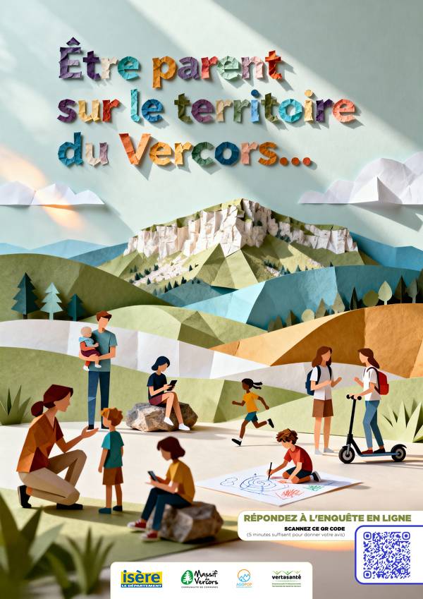 Dans le cadre du comité technique parentalité, les professionnels du territoire en lien avec les familles — Communauté de communes du massif du Vercors, Agopop, Département de l’Isère et Communauté Professionnelle Territoriale de Santé du Vercors — proposent un questionnaire à destination des parents.