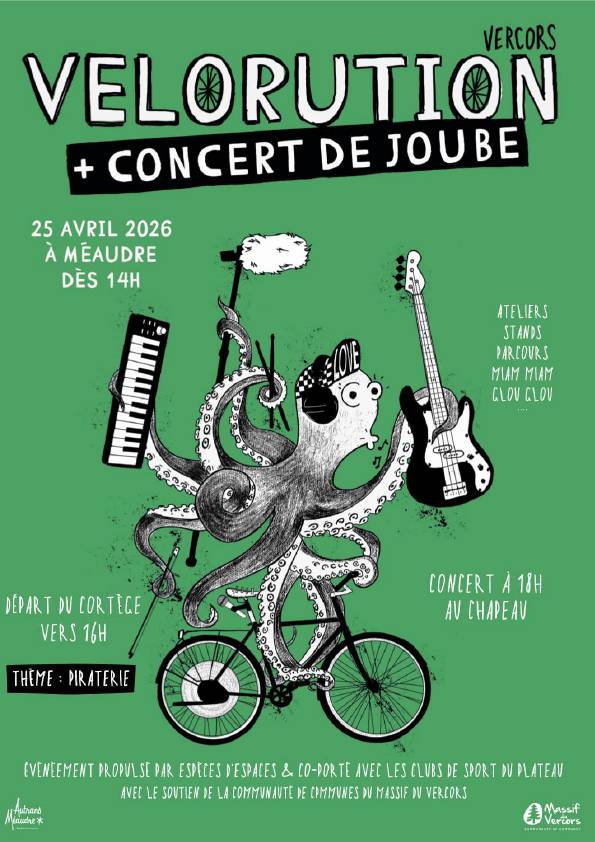 dès 14h ralliement à vélo depuis les principaux villages du Vercors vers le cortège déguisé qui partira de Méaudre (à 16h),projections (le jour J et quelques jours avant au Clap), ateliers réparation vélo, ateliers ludiques et décoratifs, vélos rigolos, et un concert tout particulier à la fin de la journée avec un artiste ayant fait de son vélo son instrument de musique ! De nombreux partenaires se sont mobilisés autour de cette journée portée par Espèces d'Espaces.