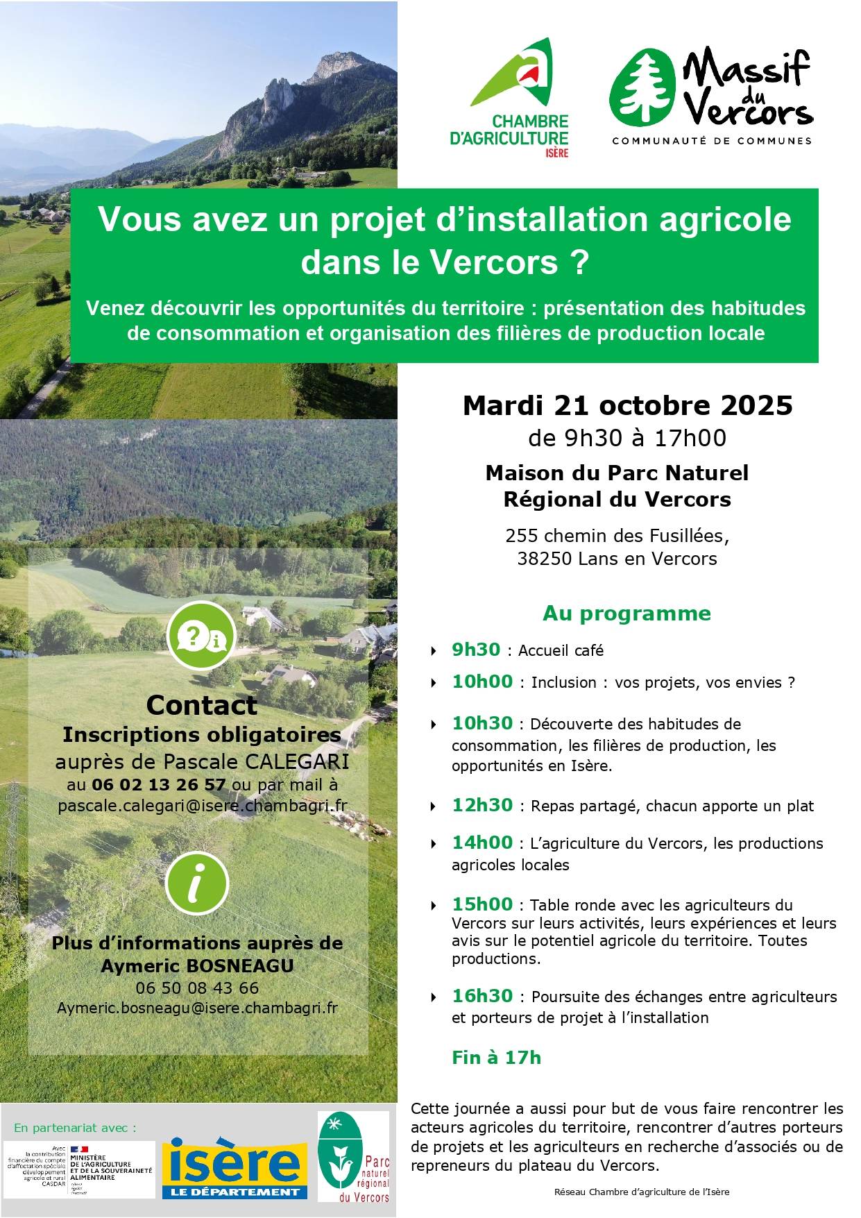 CCette journée a également pour objectif de favoriser les rencontres avec les acteurs agricoles du territoire, de mettre en lien porteurs de projets et agriculteurs en recherche d’associés ou de repreneurs sur le plateau du Vercors.