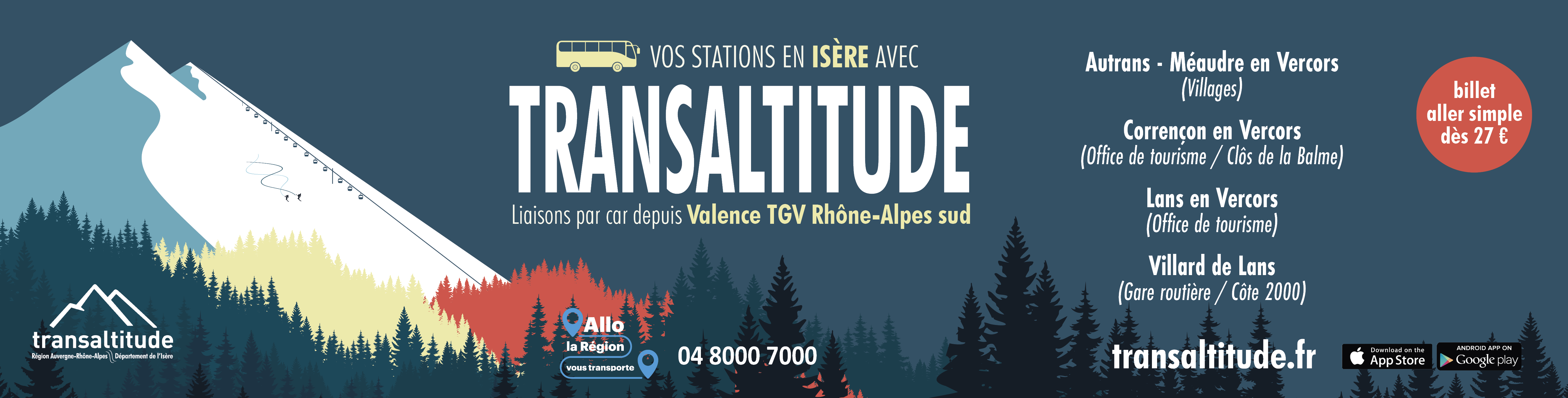 Avec le service Transaltitude, au départ de la gare de Valence TGV, vous accéderez au Vercors en un rien de temps ! La gare de Valence TGV (comparativement à Grenoble) est beaucoup plus accessible en train depuis de nombreuses grandes villes françaises. A la sortie de la gare, un car vous attendra pour vous amener au cœur de chaque village-stations de notre territoire : Lans, Villard-de-Lans, Corrençon-en-Vercors et Autrans-Méaudre. En 1 heure 30, vous serez transporté dans le Vercors sans vous soucier des équipement pneus neige, de la météo.